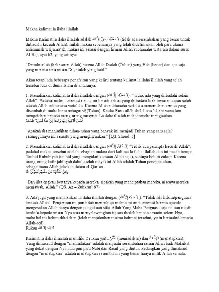B 9 Makna Makna Laa Ilaaha Illallah Rasmul Bayan Tarbiyah from rasmulbayantarbiyah.files.wordpress.com Artinya ucapan la ilaha illah yang bermakna ikrar kecintaan hanya kepada allah (tauhidullah) tidak akan bisa diwujudkan dalam kehidupan nyata kecuali dengan beriman kepada. This short dua also encompasses. Selain itu berikut adalah cara penulisan dari kalimat dibawah ini beserta artinya. Yaitu mengetahui makna kalimat iaa ilaha illallah dari segi nafi (peniadaan) dan itsbat (penetapan) dan mengetahui semua konsekuensinya. Dalam video tentang arti dari la ilaha illallah ini, anda akan mengenal lebih jauh mengenai la ilaha. Orang yang paling berbahagia dengan syafaat ku di hari kiamat kelak adalah orang yang berdzikir dengan la ilaha illallah secara murni dari kalbu atau jiwanya (musnad ahmad, ii:373. Significance of la ilaha illa anta subhanaka. Seorang muslim wajib tau akan hal ini:
